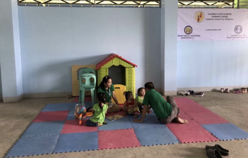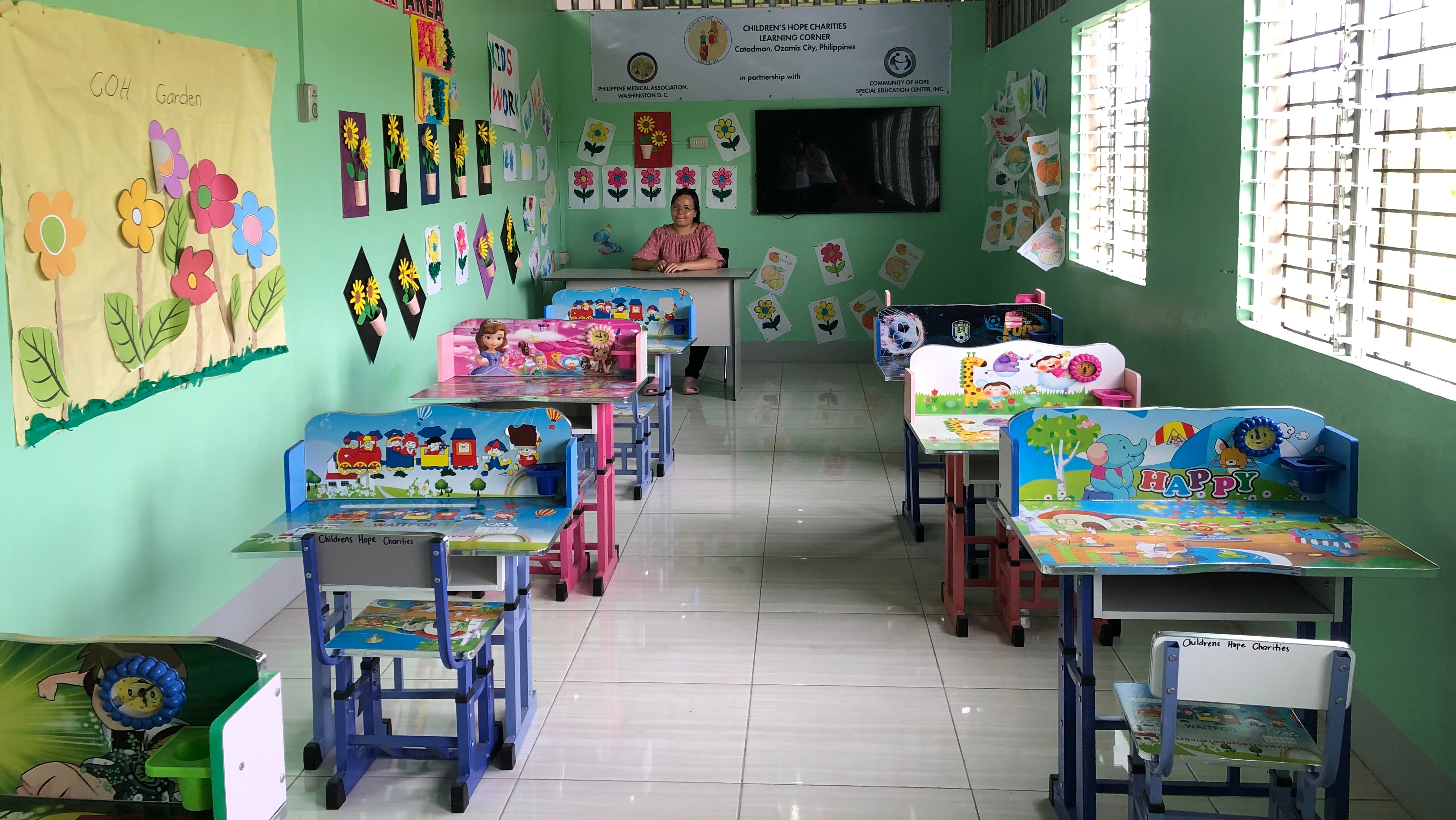 In this collaboration Community of Hope Special Education Center, Inc. provided a newly built classroom which CHC and PMAMWDC funded to paint and install window grills and outfitted it with Smart TV, Computer, Blue Tooth Speaker, Teacher’s desk/chair, study tables/chair for the children, toy shelves, book shelves, folding dining tables, rubber mats, and chairs for the Multipurpose Hall.
